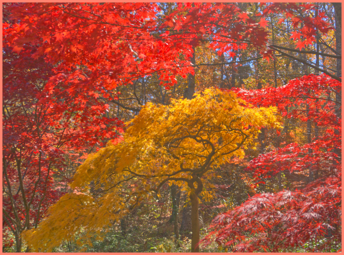 On Thursday I stopped by Gibbs Gardens to see the maples in the Japanese Garden. I was there midday in bright sunlight, so the colors were incredibly vibrant. The other two pictures are from Gibbs Gardens.