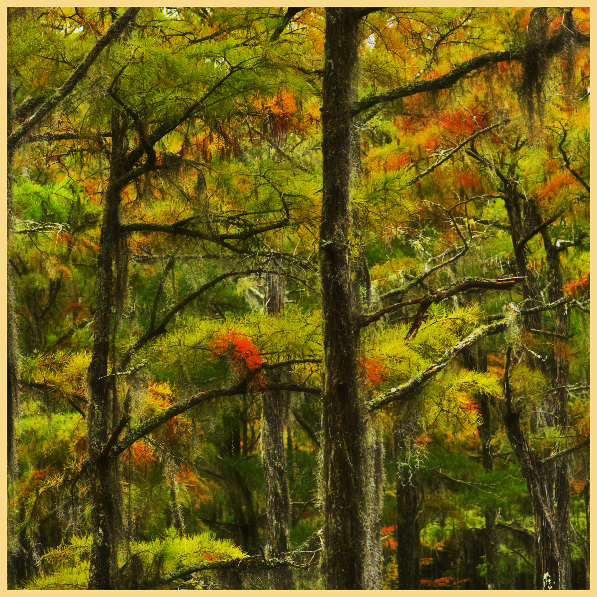 I attended a photography workshop at George L Smith State Park near Twin City, GA in late October. We got some very nice color in the trees. The water level was at least 5, maybe more, feet below normal, so much more of the root ball of each tree is visible. And we could walk to places that would usually require a kayak.