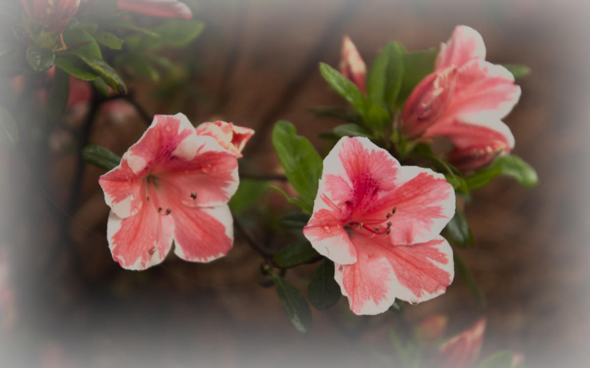 I got up early on Easter morning hoping for a nice sunrise to enjoy. What I got was a fog bank. But ya take what ya get, so I went anyway. Later that day, after the fog dissipated, I went out in the yard to shoot the flowers in bloom, irises and azaleas. Along the way was a very pretty weed in bloom, so I captured that also.