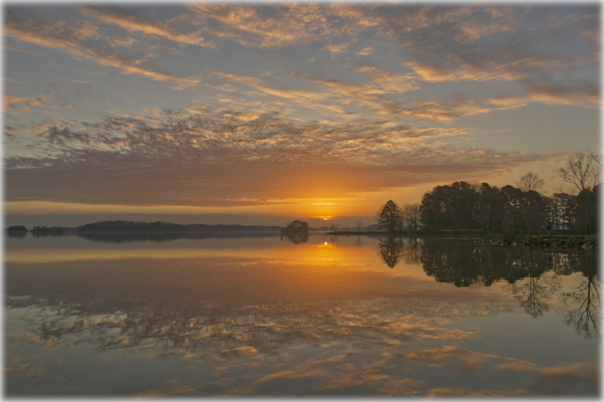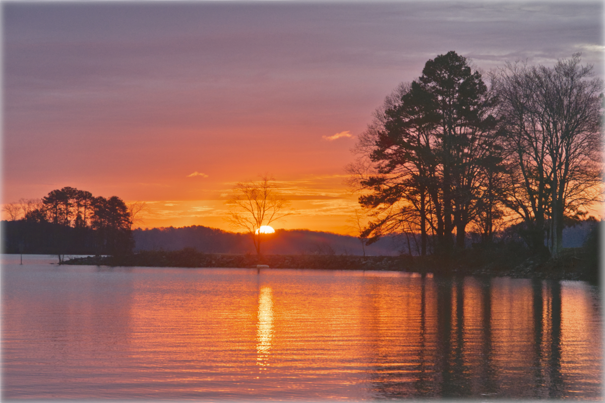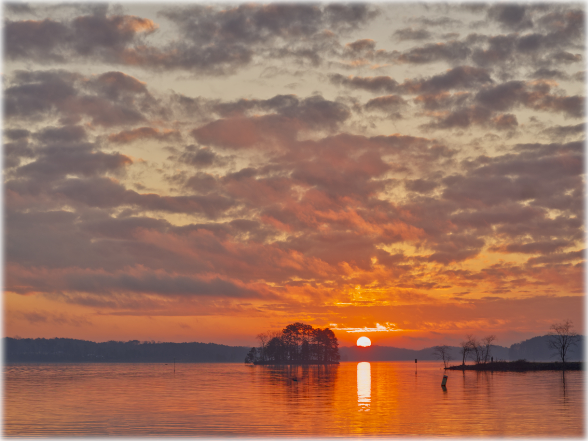 A set of five sunrise images, each on a different day in early March, five of the first eight days of the month. All were taken at West Bank Park near Buford Dam on Lake Sydney Lanier northeast of Atlanta, Georgia.