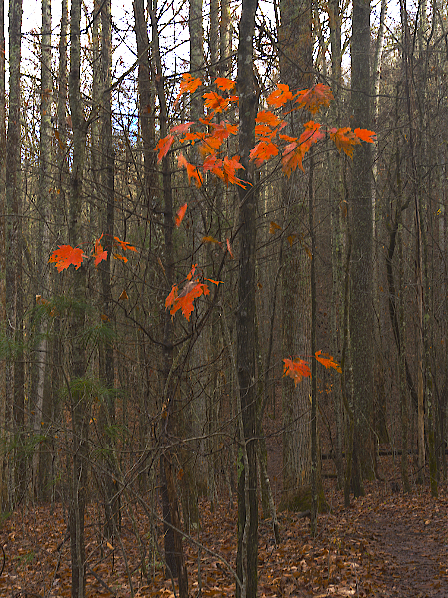 We had only a trace of rain during October. Not a record, but one of the longer dry spells in Atlanta’s history. So the fall color never really materialized as it has in the past.