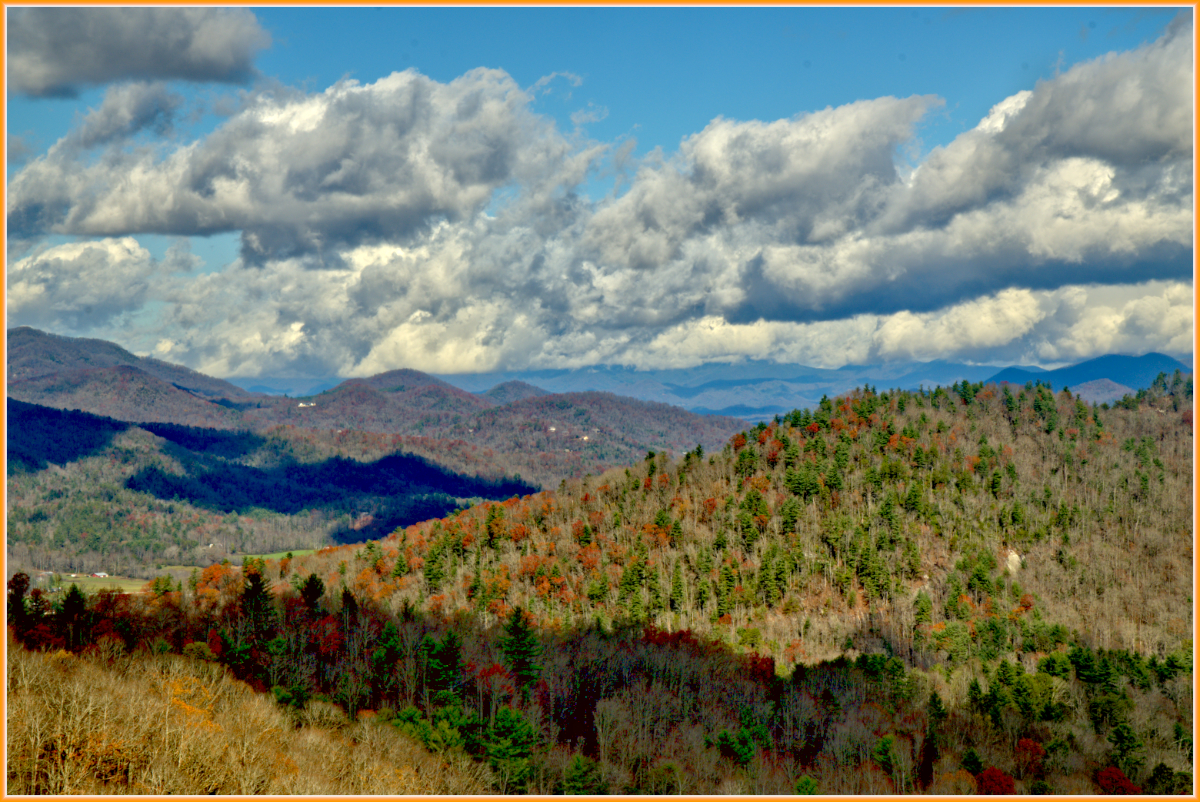 We spent a few days in mid-November at Blackl Rock Mountain State Park near Clayton, GA, Rain and fog on the first day, but I got a good image of the ducks on Black Rock Lake. I got an image at the visitor’s center just to show the fog, and I repeated that at the cabin after dinner and the next morning. The fog meant no view from any of the overlooks at sunrise, and the rain/fog meant really slick trails. We hiked the Tennessee Rock trail and down to Hi-Ada Falls. I captured a few images along the way. Sunrise the last morning was clear, but the light on the mountain as the sun popped over the hill was very nice.