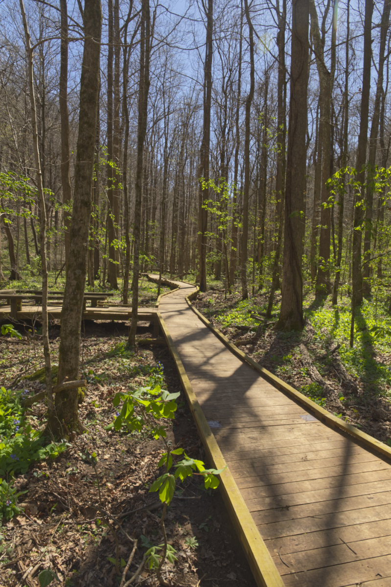 Some of us from the North Georgia Photography Club visited the trail one chilly windy morning in March. The conditions were not ideal for photography, but the area was lush and colorful. Many Virginia bluebells at the start of the boardwalk, and many more blooms all the way down to the waterfall at the end of the ravine. I took all my gear, and I used almost every piece of it. Access for most of the area is restricted to the boardwalk, so a long telephoto lens is needed to get reasonably close pictures of the flowers. But some blooms are so close to the boardwalk or trail that the macro lens or wide angle lens is required. And everything in between. I ended up using a higher ISO setting than normal in order to use a sufficiently fast shutter speed to freeze the blowing blooms. All in all, a fun, interesting, challenging couple of hours.