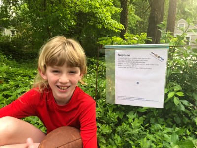 So we got busy and made signs for each planet to place along our street at the right distances. (We made sure to get permission from the homeowners first.) Now when our neighbors take a walk they can learn more about the planets and take a journey from the Sun all the way out to Pluto!